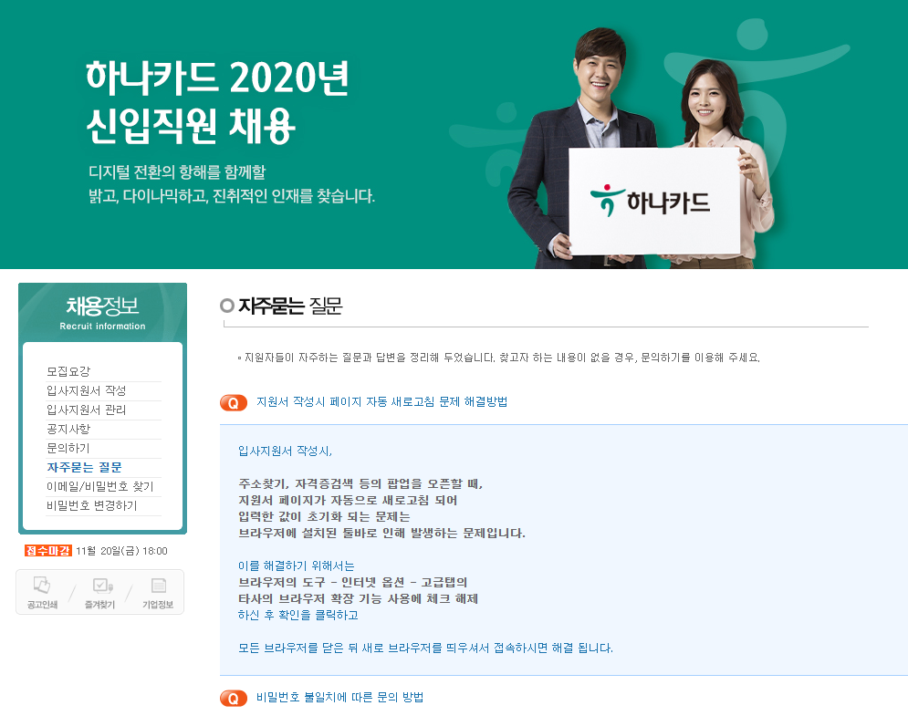 하나카드에서 2020년 대졸 신입직원을 모집합니다!