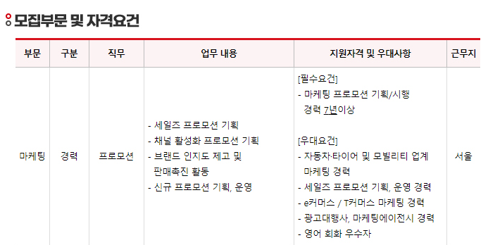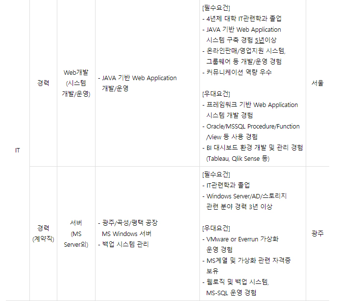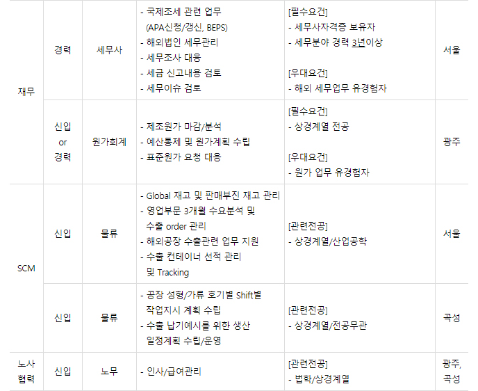 ✔️ 채용부문 : 마케팅(경력), IT(경력, 경력 계약직), 재무(경력, 신입 or 경력), SCM(신입), 노사협력(신입), 연구(신입 or 경력)
