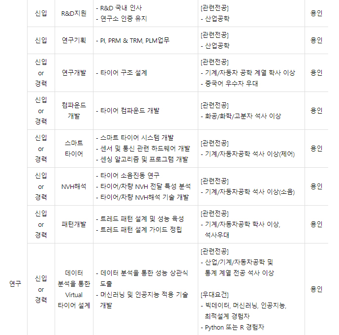 금호타이어에서 신입 및 경력사원을 채용합니다!
