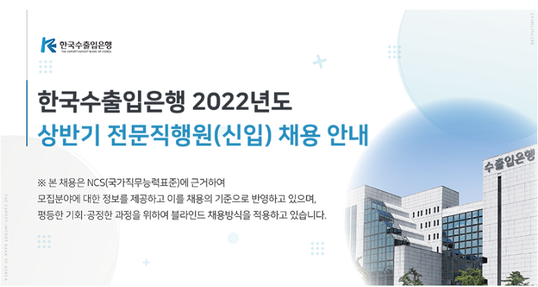 한국수출입은행에서 신입(전문직행원) 채용을 진행합니다.