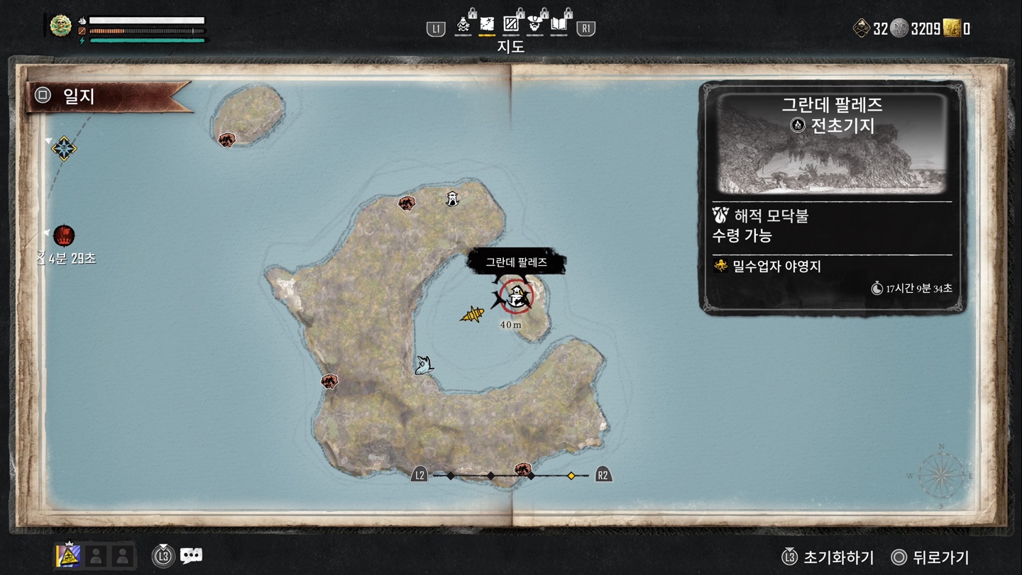 스컬앤본즈(SKULL AND BONES) 중급을 위한 후기 공략 - 남부 분지 배달갈 때 숨기 좋은 그란데 팔레즈
