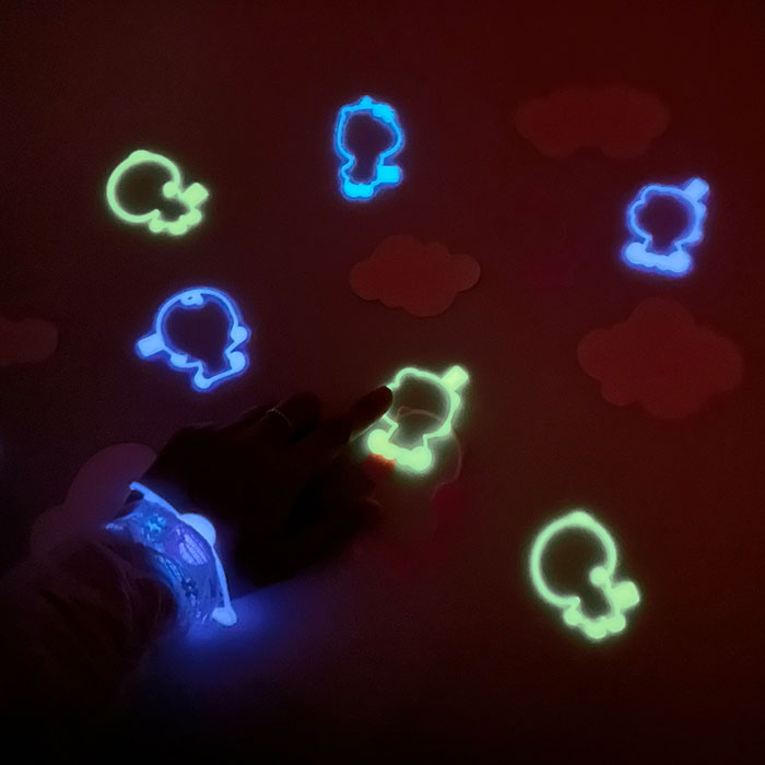 어두운 곳에 가면 캐릭터 밴드가 밝게 빛나는 야광 기능이 있습니다. 저녁 먹고 가볍게 공원 산책을 나가거나 캠핑장 발밑이 어두울 때, 아이 손목에서 빛나는 야광 키퍼링 덕분에 미아 방지 효과도 있고 아이도 정말 재미있어합니다.