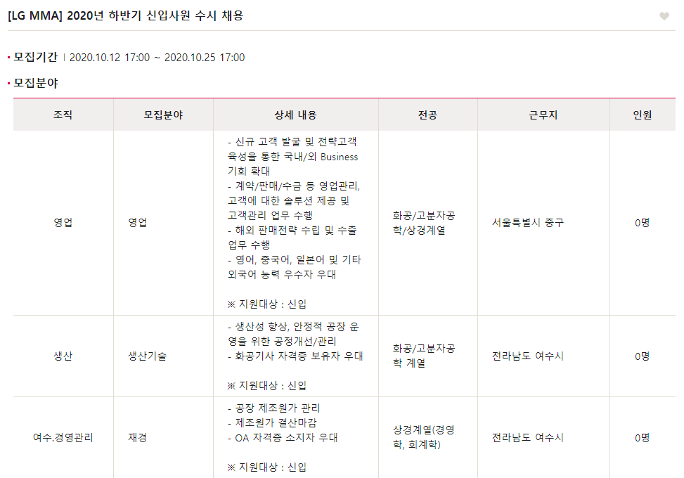 LG MMA에서 하반기 대졸 신입사원을 모집합니다! 아래 채용 속보를 확인해보세요~